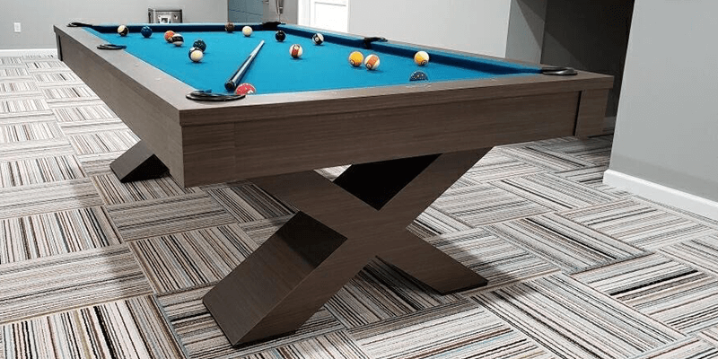 The Encore Pool Table is made from Wood Veneers, with Solid Wood rails, flat panel aprons and unique “X” style legs. All Olhausen Pool tables are hand-crafted at our 250,000 sq. ft. manufacturing facility in Portland, TN and feature Accu-Fast Cushions and our Lifetime Warranty.