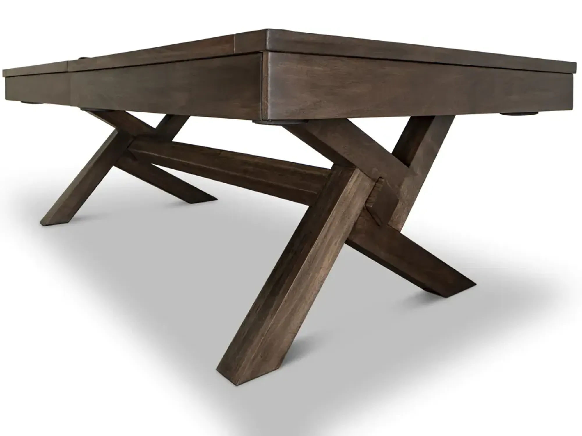 The Filmore pool table exudes a bold yet sophisticated presence, finished in a hand-stained Brown Oak that accentuates the natural elegance of the wood. The deep, rich tones create a luxurious look, making it a perfect centerpiece for both contemporary and traditional spaces.