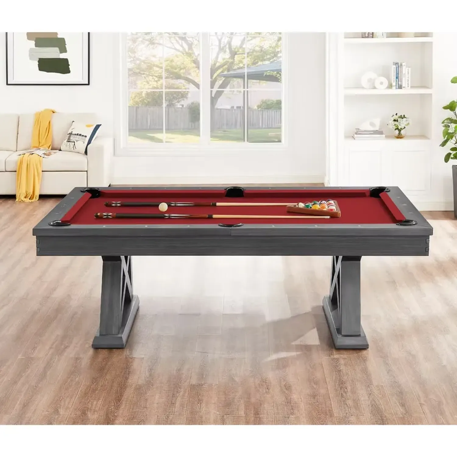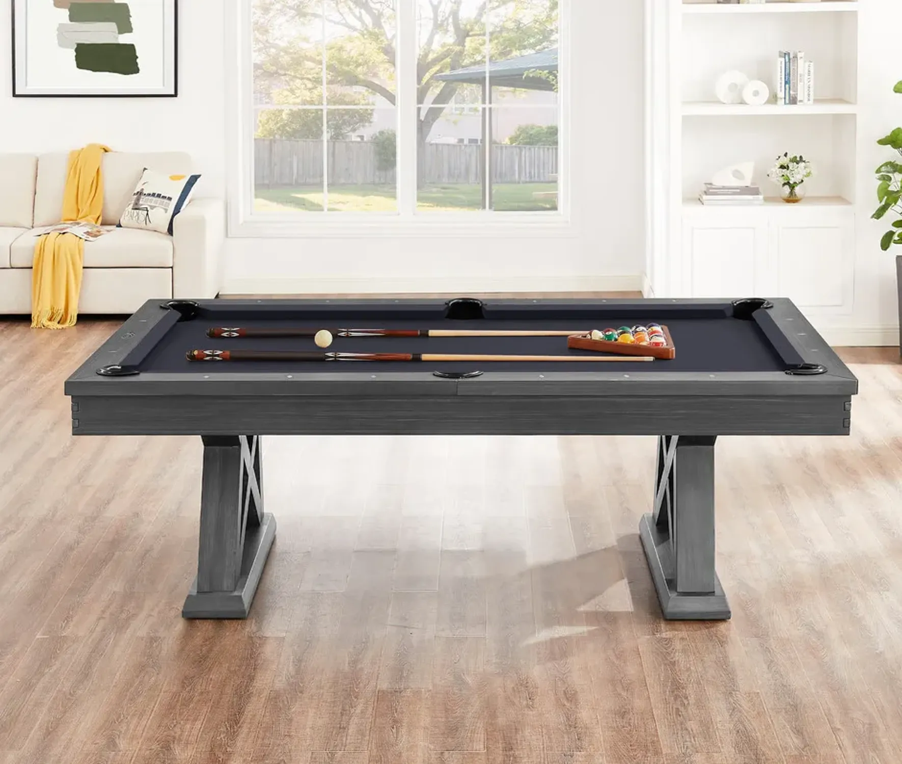 The Laredo pool table is made of solid wood and features unique design elements that give it an original look, perfect for a modern farmhouse living space. The crossbeam leg design and interlocking corner detail provides that rustic element as well as stability. Designed for fun. Crafted for Life.