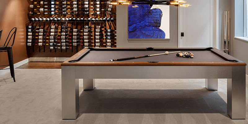 Shown in Brushed Aluminum Frame w/ Matte Black Lacquer Rails w/ Simonis Green Cloth
