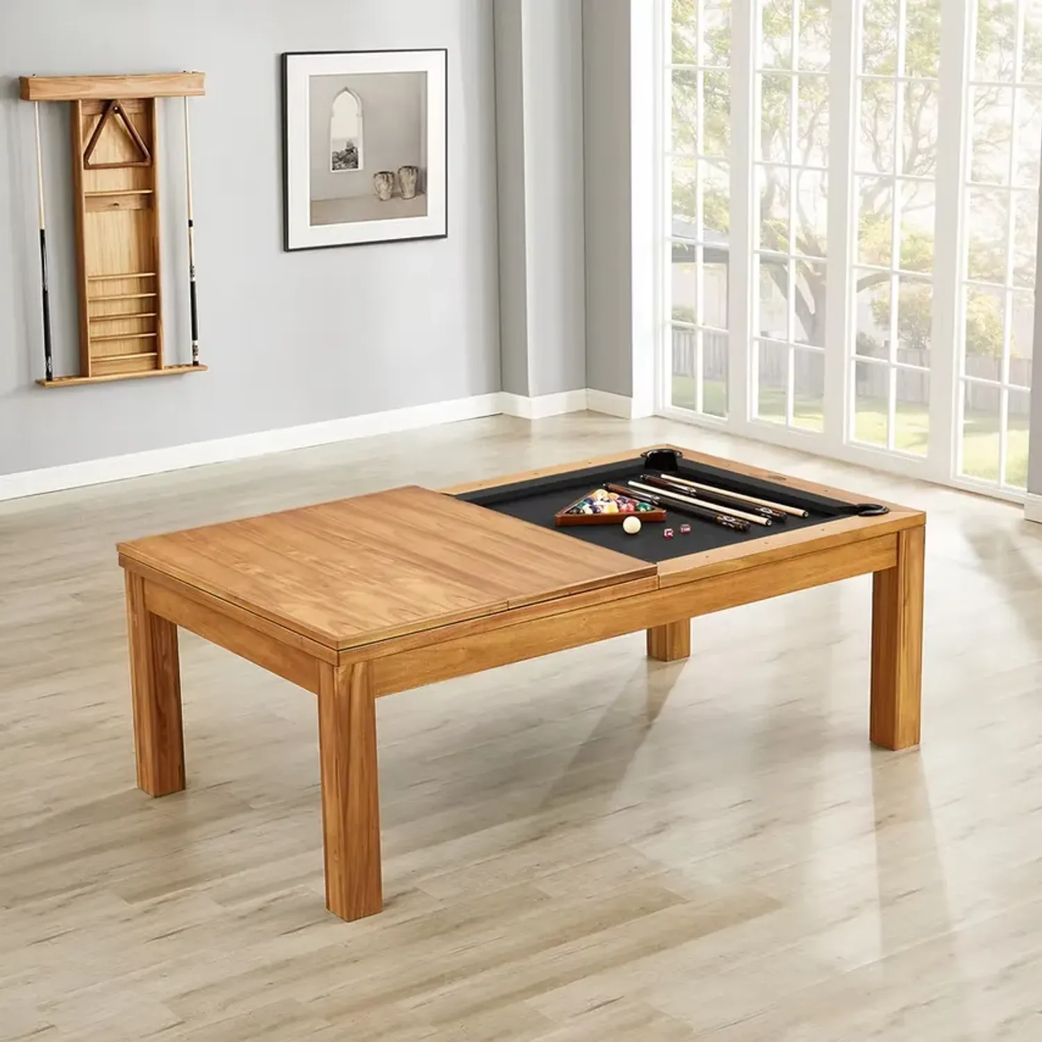 The Penelope II has the same sleek, clean frame of the first-generation table but with a thinner overall body. This table’s post legs, wood frame, and steel support beams provide maximum stability. It also has a slate-leveling system to ensure a consistent playfield. This table also comes with a dining top that can convert the table from a place to play to a place to dine. All Imperial pool tables are skillfully crafted and designed by billiard experts and enthusiasts.