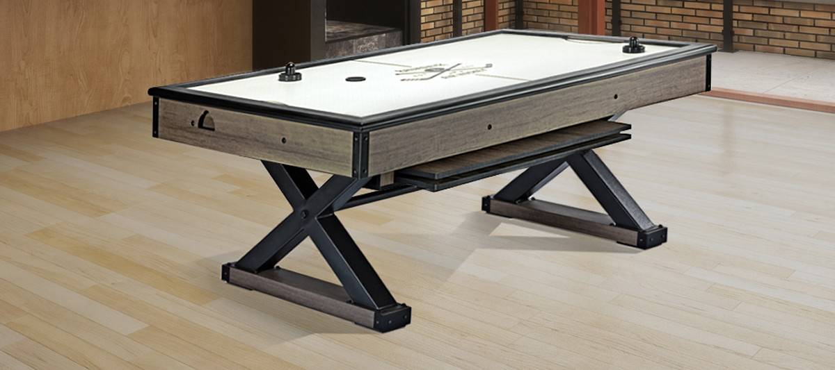 Powder coated aluminum top rails Powder coated steel corner protectors throughout Powder coated steel "X" pedestal legs and stretcher bar Super slick, scuff-proof play surface