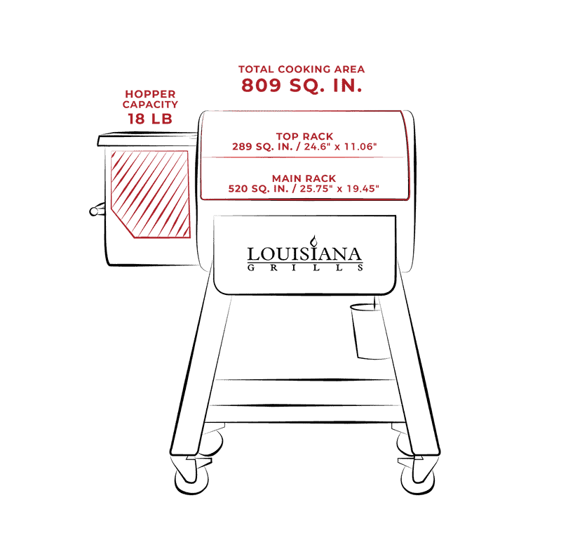 With a slew of innovative accompaniments, the 800 Black Label Grill is the perfect grill to handle full course meals for 7-8 people. It delivers robust versatility in a family-sized package. Between 809 square inches of cooking space, a 180° to 600°F temperature range, and an 18-pound hopper, the LG800BL goes beyond the predictable large-sized grill. It also comes equipped with two full-functional programmable meat probes, an open and close slide-plate flame broiler lever for direct and indirect heat, porcelain-coated cooking grids, fan-forced convection airflow technology, one-touch auto-start grill ignition, and automatic start-up and cool down.