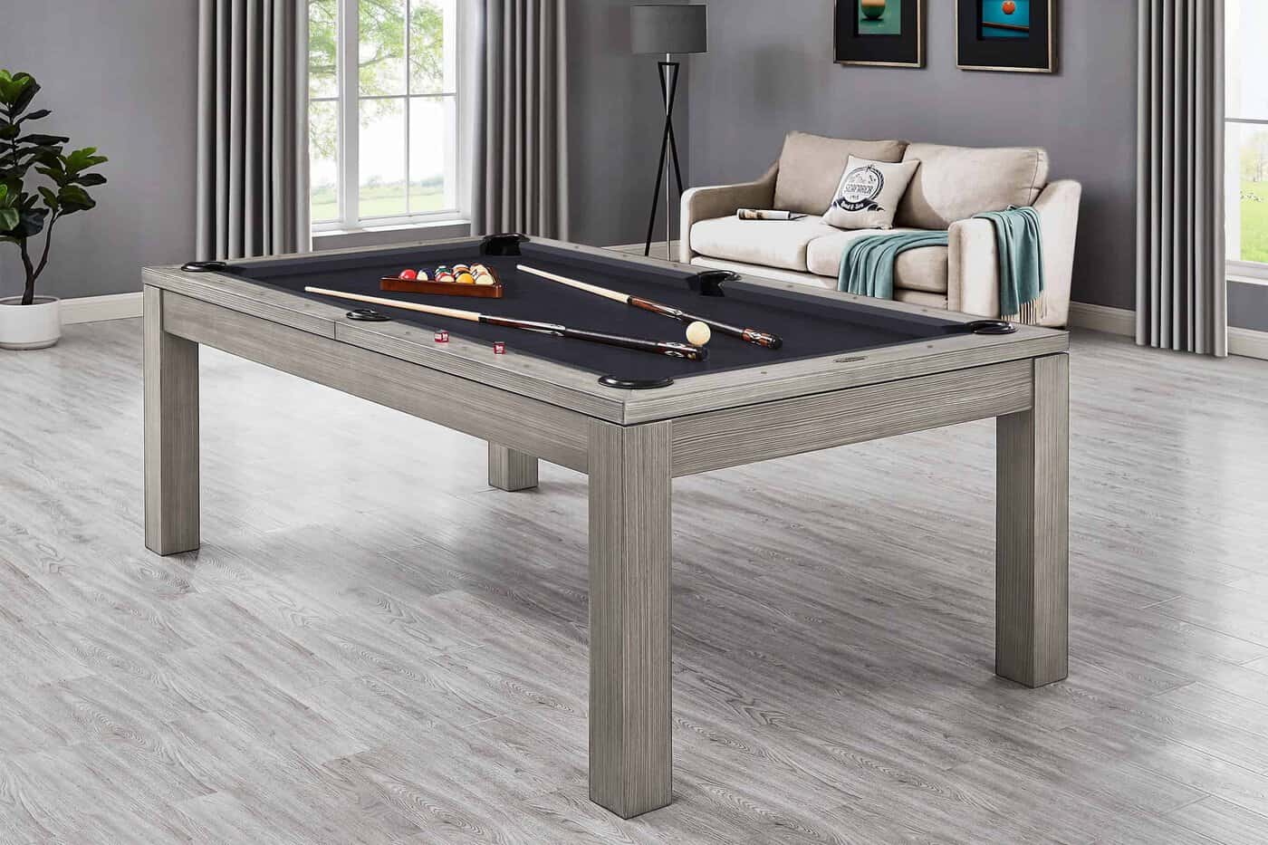 The Penelope II has the same sleek, clean frame of the first-generation table but with a thinner overall body. This table’s post legs, wood frame, and steel support beams provide maximum stability. It also has a slate-leveling system to ensure a consistent playfield. This table also comes with a dining top that can convert the table from a place to play to a place to dine. All Imperial pool tables are skillfully crafted and designed by billiard experts and enthusiasts.