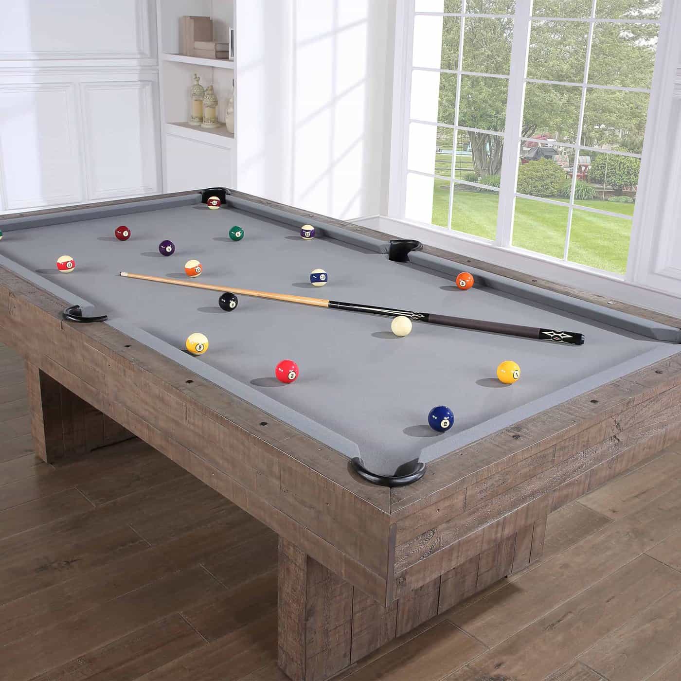 Introducing the Slaton Pool Table, a contemporary piece that will elevate any game room. Finished by hand using a multi-step process, the table comes in a striking grey hue that is sure to impress. The 1″ three-piece certified slate ensures the highest play quality possible, while the K66 Natural Cushion Rubber on each rail provides a consistent, authentic, and even rebound. The Teflon-coated spill-resistant felt and custom drop pockets made of leather further enhance the table’s functionality and aesthetics, allowing for consistent, quiet play as well as a great look. Get ready for endless hours of fun with this exceptional pool table!