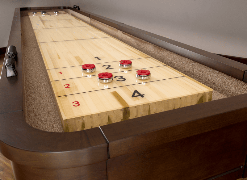 The Milan features a traditional, clean look, combined with unmatched construction principles to create a spectacular, high-end shuffleboard experience. By using a heavy-duty poplar playfield that is extra large at 20 inches wide by 2.5 inches high, we ensure fun family game play on a board that is meant to last. Polyurethane protects the beautiful poplar board from damage while a vertically staved Playfield ensures the boards stability through temperature change. The table’s undercarriage features climatic adjusters to help level the board properly under all circumstances.
